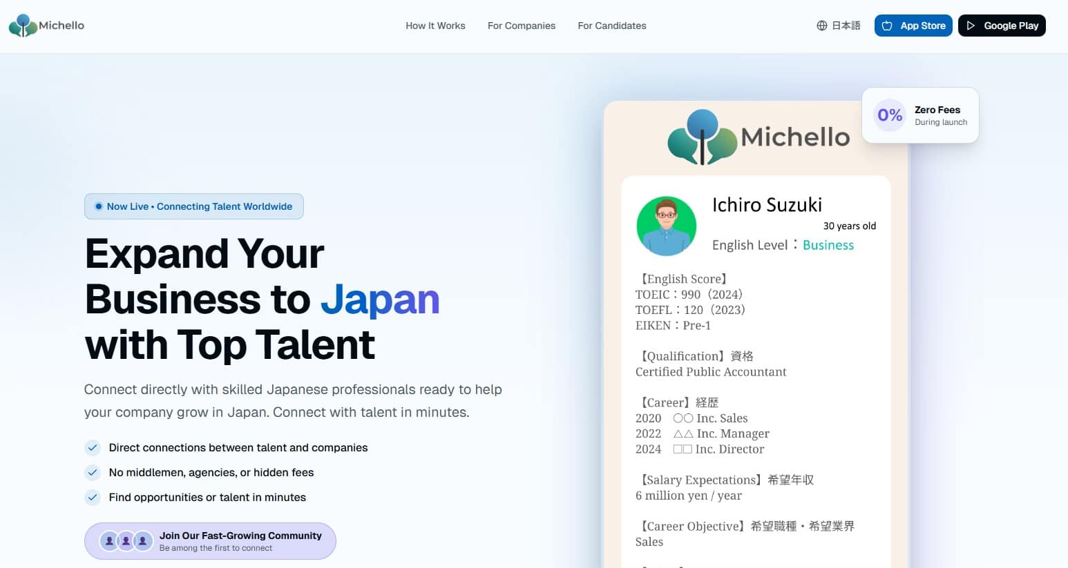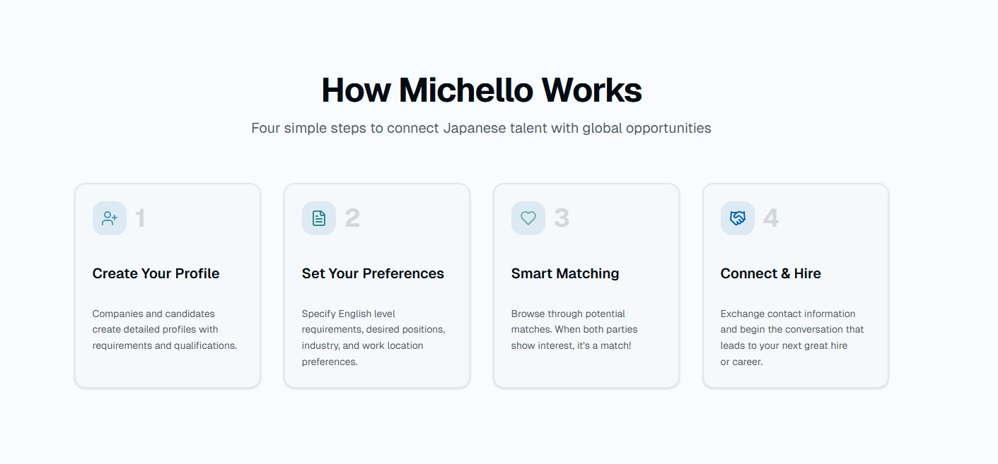 We help you build a strong local team through Michello – our talent matching platform connecting overseas companies with skilled Japanese professionals.